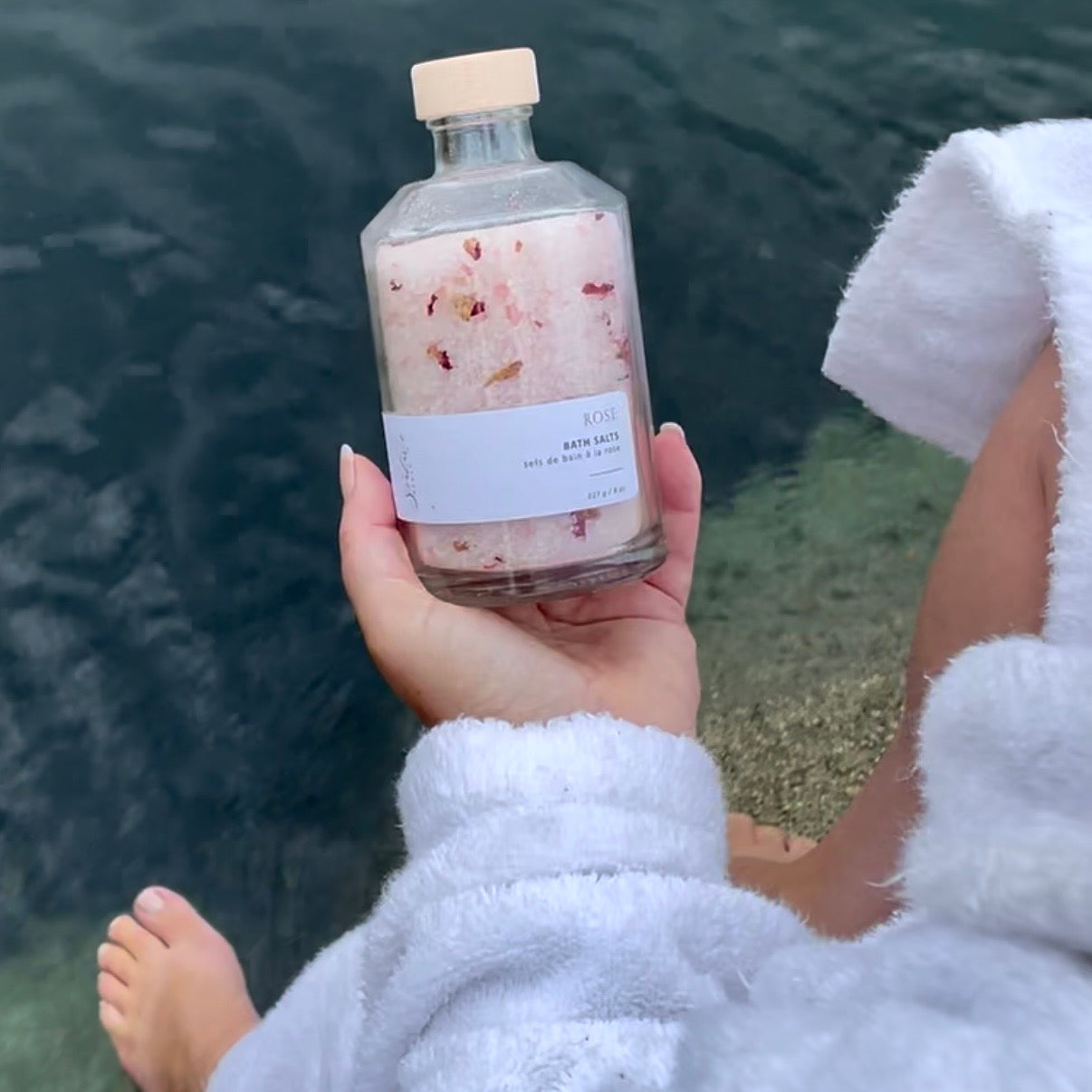 Add a generous handful of salts to warm running bath water and swirl to dissolve. Step in, exhale deeply, and soak for at least 20 minutes to allow the minerals to work their magic.